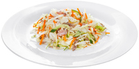 - In a large mixing bowl, combine the shredded cabbage, carrots, green onions, and dill (if using).